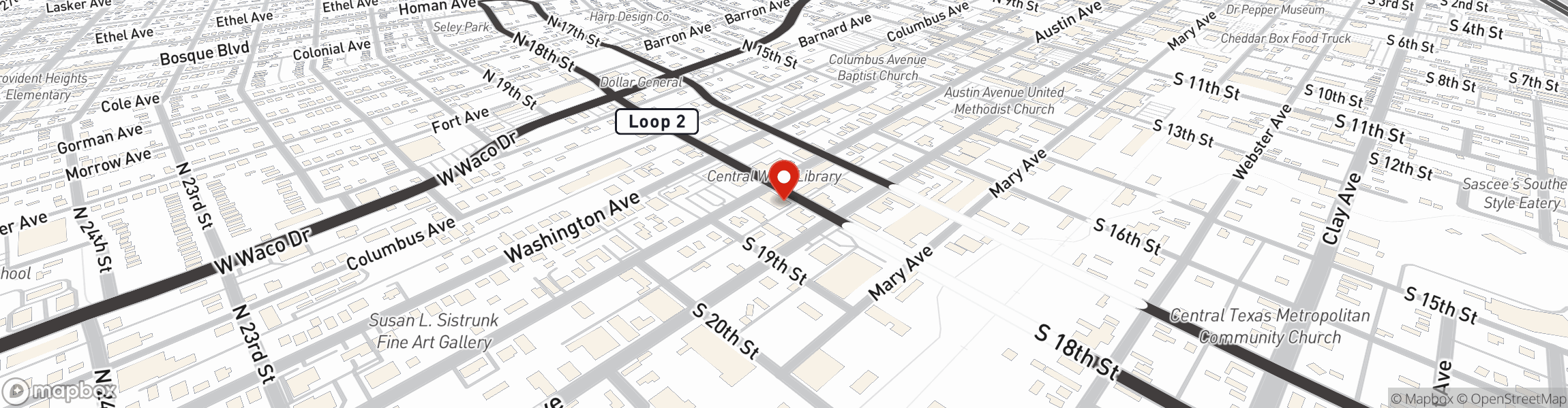 Across from the Waco- McLennan County Library. On S18th Street between Austin Ave. and Franklin Ave.